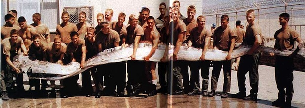 This was believed to be a photo of Navy officers with the Naga in 1973 – but is in fact just an oarfish