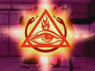 These 3 characters are known as the “Order Of The Triad”, comprised of a black magic warlock, a vampire slayer, and a Christian monk. This group is frequently seen throughout the show, provided as allies for the Venture Bros. when they need it. Now as you can already gather from the photo, there is a pyramid behind the vampire slayer (in their headquarters), but that’s not all. The “Order Of The Triad” has a symbol that they go by whenever they assemble. Guess what it is?