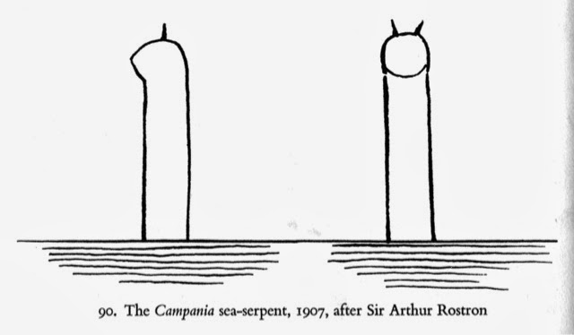 Although I do not agree with Scott’s views in regard to these aspects, I did mention to him that his hypothetical Umoonasaurus reconstruction is similar to the “sea serpents” allegedly seen by Sir Arthur Rostron and Reverend James Joass. The unknown animal reportedly seen by Rostron while he was onboard the Campania had ‘very small ears’ on a head which ‘rose eight or nine feet out of the water’.1 Although the eyewitness sketch (shown below) is quite simple due to the lack of other details able to be seen by Rostron, it does show the pointy “ears” of the longneck. Sir Arthur Rostron was incidentally the man who saved more than 700 survivors of the Titanic among floating ice, and was likely trustworthy due to his position as chief officer of the Campania.1