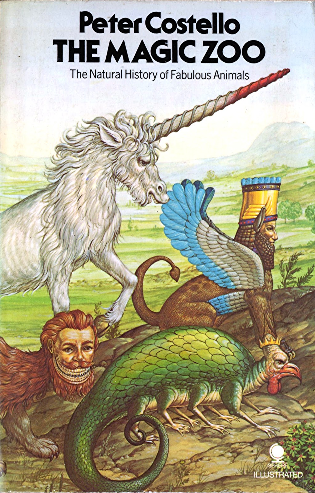Peter Costello’s book The Magic Zoo, featuring a manticore at bottom-left on the front cover (Sphere Books)
