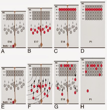 How and when this process occurs is well understood, though the means by which cells move radially, away from the column in which they start, is not well understood. What is known, though, is that the process is very sensitive and can be affected by many biological, physical, and chemical agents. The authors state: